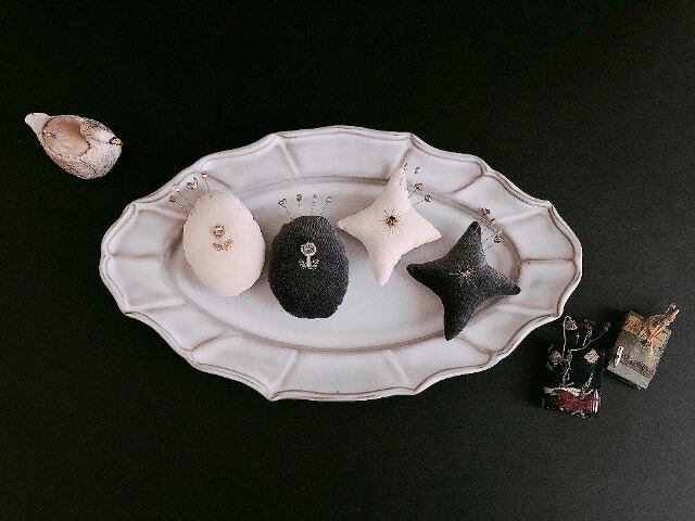 :: コロンとした針山 オーバル・白 / オーバル・グレー